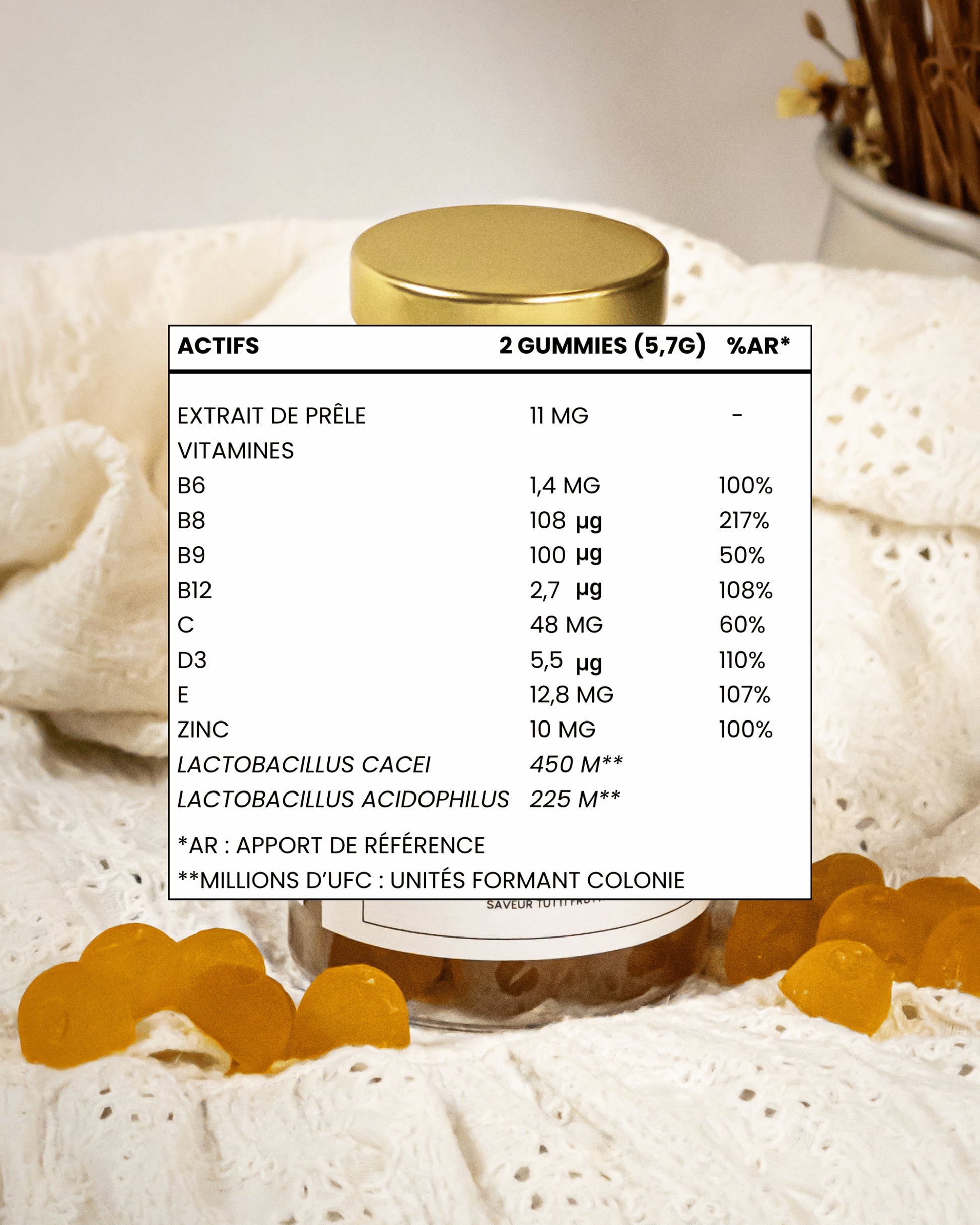 - -Les probiotiques agissent en parallèle pour équilibrer le cuir chevelu et réduire les éventuelles inflammations.