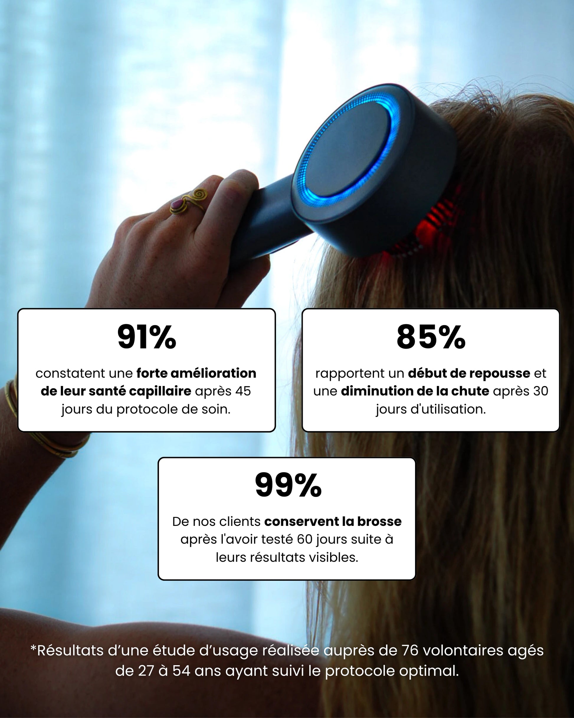 Routine 3x par semaine : La stimulation régulière redonne brillance et vitalité à des cheveux ternes ou fatigués.